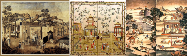 From Qing dynasty, silk painted wallpaper was installed in the imperial palace in Beijing which combined the traditional handicrafts and western painting skills and was quickly taken up by the Europeans, obsessed with all things Chinese as the country opened up in the 18th and 19th centuries.
