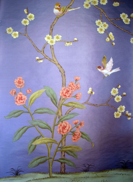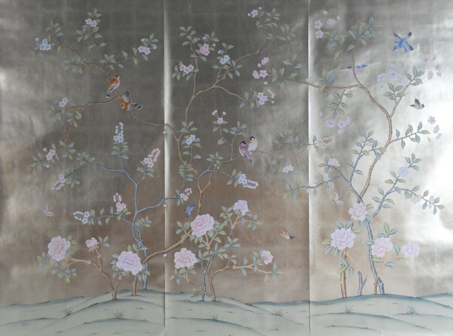 Our handmade wallpapers are devided into European landscape style and Chinoiserie style, can be painted on various background silk materials and metallic wallpaper with unique pattern color usage to fit your room styles.