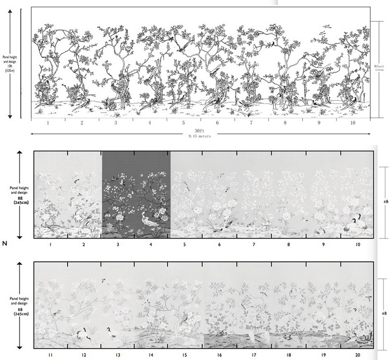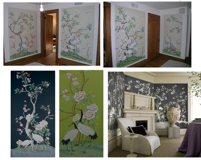Hand Painted Wallpaper, Chinoiserie Wallpaper, Chinese Silk wallpaper, Hand Painted Embroidered Wallpaper, Hand Painted European Panoramic, Handmade Wallpaper.